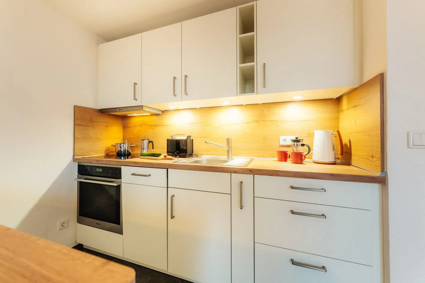 Voll ausgestattete Küchenzeile für flexible Selbstverpflegung (inkl. Bodrum Kaffee Zubereiter)