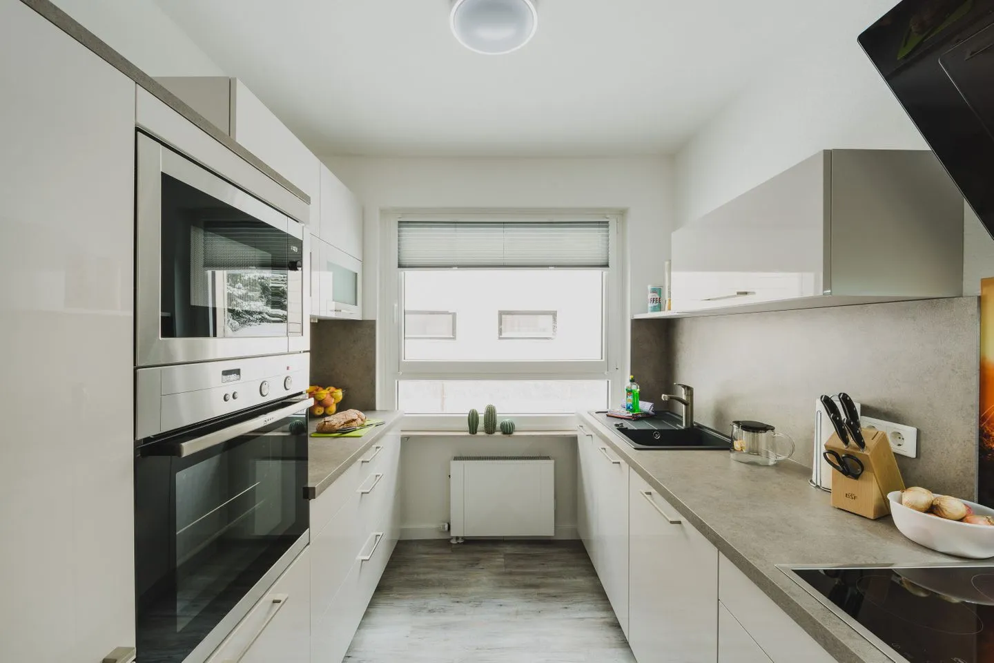 Das helle Wohnzimmer verfügt über eine komfortable Schlafcouch, einen Esstisch und einen TV. Die voll ausgestattete Designerküche lässt keine Wünsche offen und lädt zum Kochen ein. Im großen Schlafzimmer entspannen Sie im gemütlichen Doppelbett mit eigenem TV, während das kleine Schlafzimmer mit zwei flexiblen Einzelbetten (zusammenschiebbar) und ebenfalls einem TV ausgestattet ist.