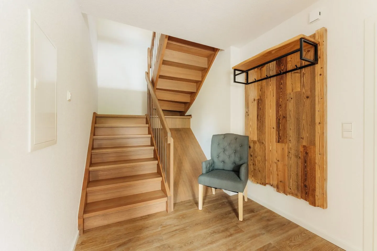 Die moderne Ferienwohnung „Wasserregal“ bietet auf zwei Etagen höchsten Komfort für einen erholsamen Aufenthalt im Harz. Dank der großen Fensterfronten ist sie lichtdurchflutet und ideal für Paare, Familien oder Gruppen.