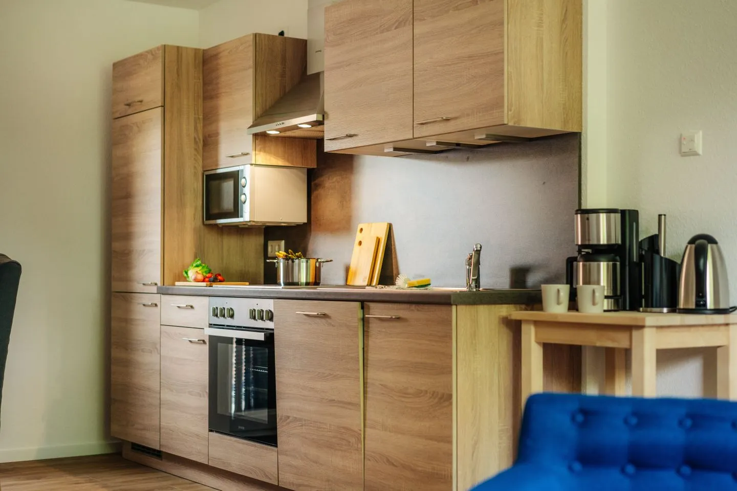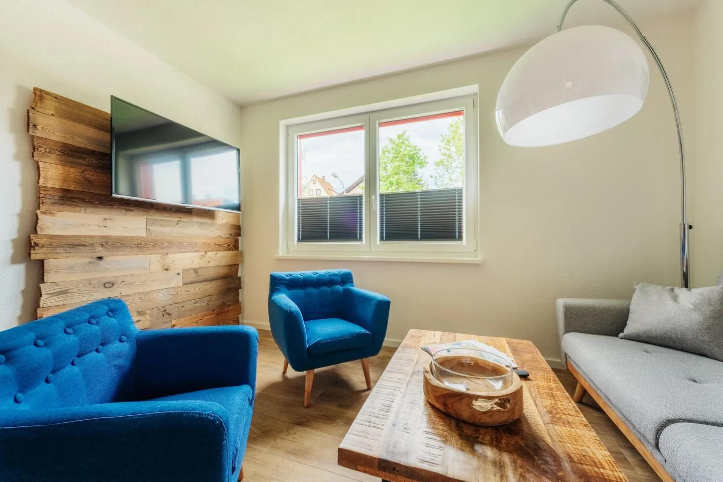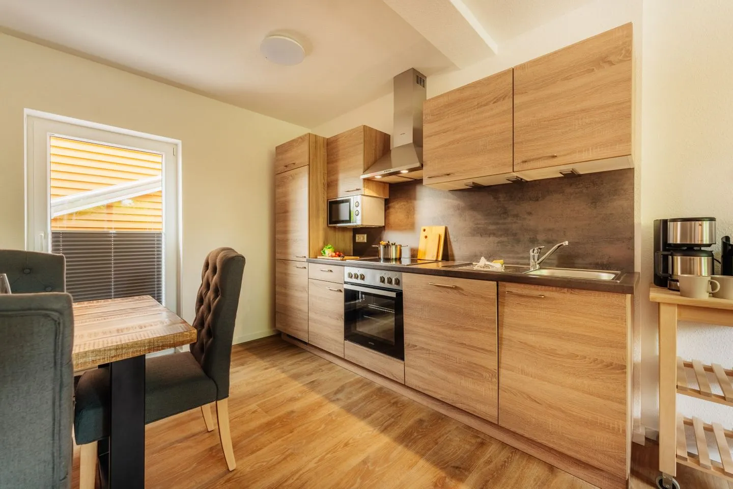 Kostenfreies WLAN und Smart-TVs in allen Wohn- und Schlafräumen. Das Wohnzimmer verfügt über eine gemütliche Sitzecke mit Smart-TV. Die angrenzende Küchenzeile ist voll ausgestattet und bietet einen großen Esstisch für gesellige Mahlzeiten. Zwei Schlafzimmer mit Doppelbetten sorgen für erholsamen Schlaf, eines davon verfügt zusätzlich über zwei Schlafsessel. Das großzügige Duschbad ist modern ausgestattet, zusätzlich gibt es ein separates Gäste-WC. Der Balkon auf der Rückseite des Hauses lädt mit einer Sitzgruppe zum Verweilen ein.