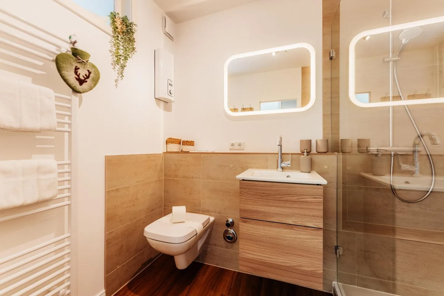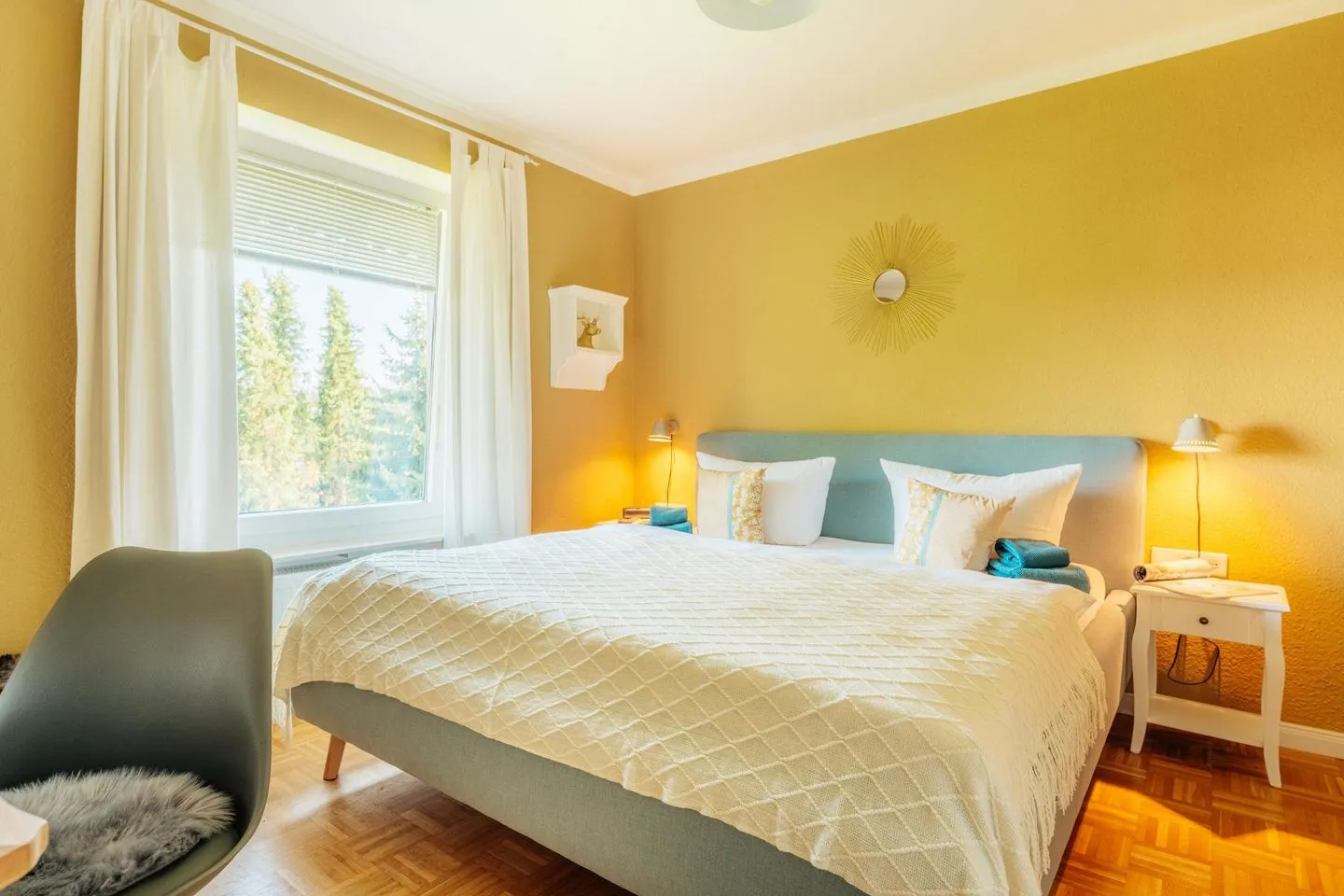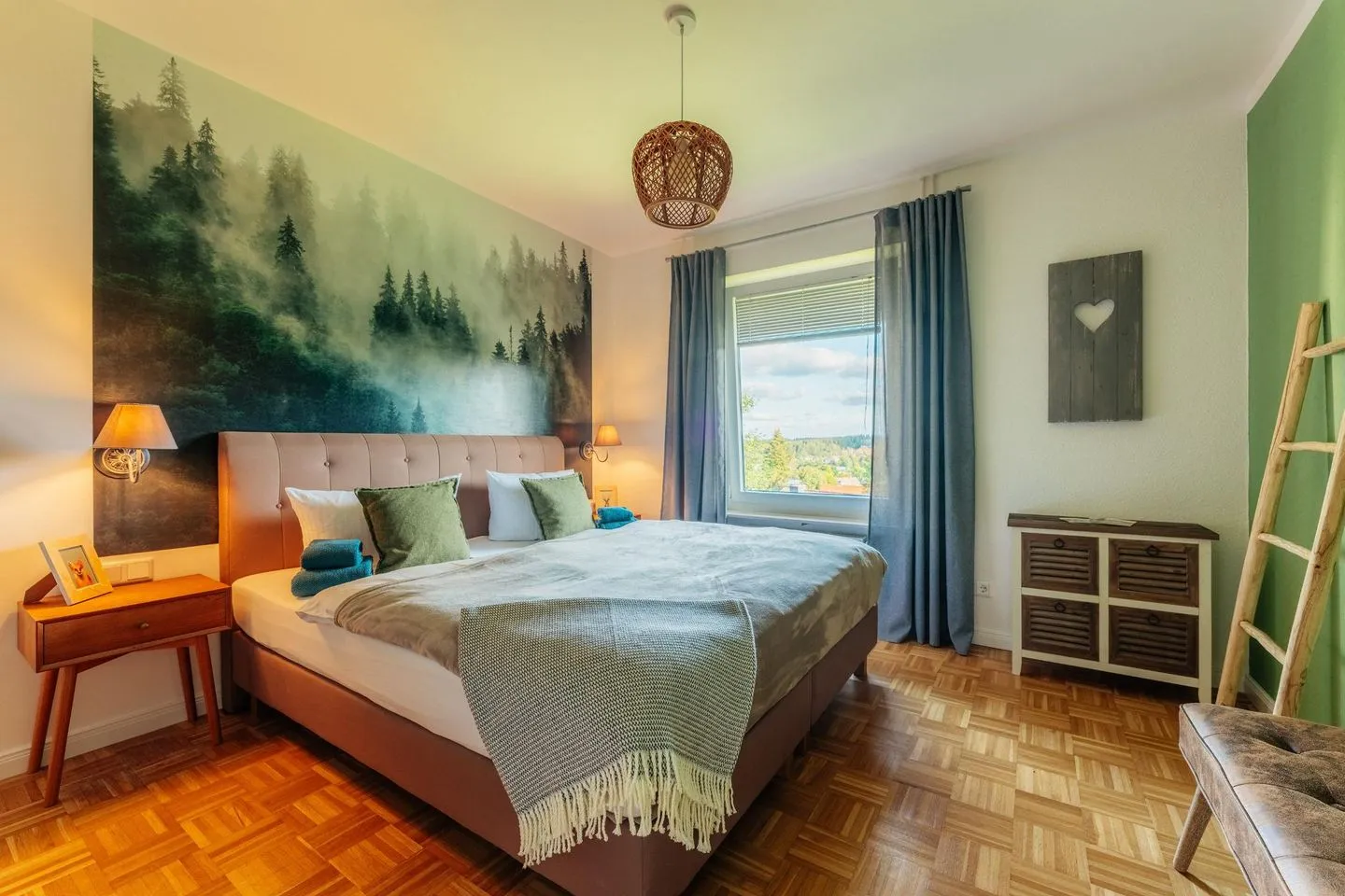 Herzlich willkommen im "Hyggeglück Braunlage", Ihrer modernen 66 m² Ferienwohnung im Harz! Erleben Sie skandinavisches Wohlfühlambiente und genießen Sie entspannte Tage in stilvoller Atmosphäre. Der großzügige Wohnbereich mit komfortabler Sitzcouch und großem Esstisch lädt zu gemütlichen Stunden ein. Der Smart-TV mit Netflix sorgt für beste Unterhaltung. Vom Balkon aus genießen Sie die frische Bergluft – mit Heizstrahler, damit es auch an kühlen Tagen kuschelig bleibt. Die separate Küche ist voll ausgestattet und bietet alles, um köstliche Mahlzeiten zu zaubern. In den zwei Schlafzimmern sorgen hochwertige Doppelbetten für erholsamen Schlaf, eines davon mit eigenem TV. Das moderne Badezimmer mit ebenerdiger Glasdusche und Handtuchheizung bietet puren Komfort.