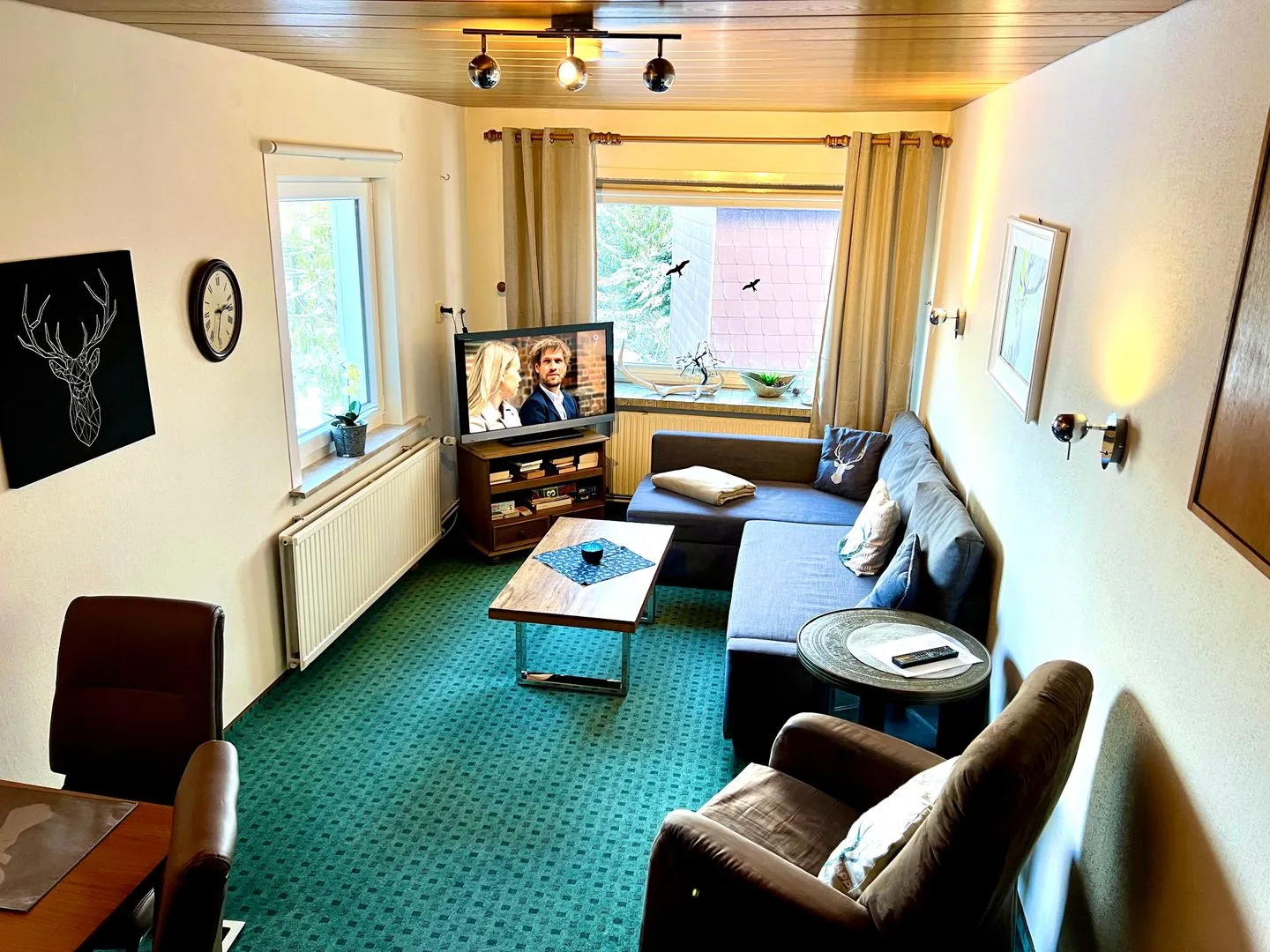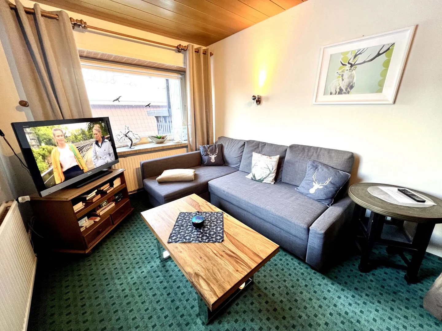 ✅ Wohnzimmer mit Schlafsofa & TV für entspannte Abende