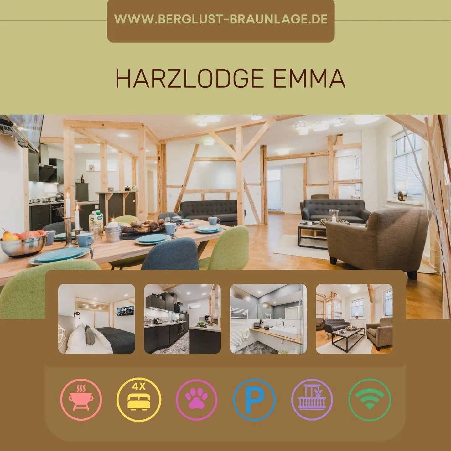 Die Harzlodge Emma ist eine großzügige Maisonette-Ferienwohnung in Braunlage, die sich ab der 1. Etage über zwei Ebenen erstreckt. Die Wohnung entstand aus zwei ehemals getrennten Einheiten, die zu einer komfortablen Unterkunft für Familien und Gruppen zusammengelegt wurden.
