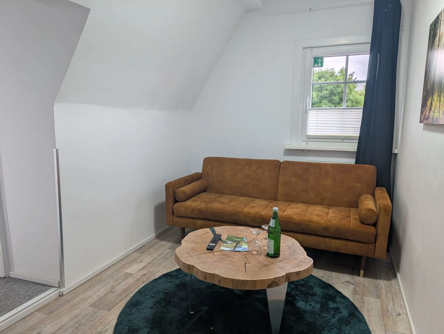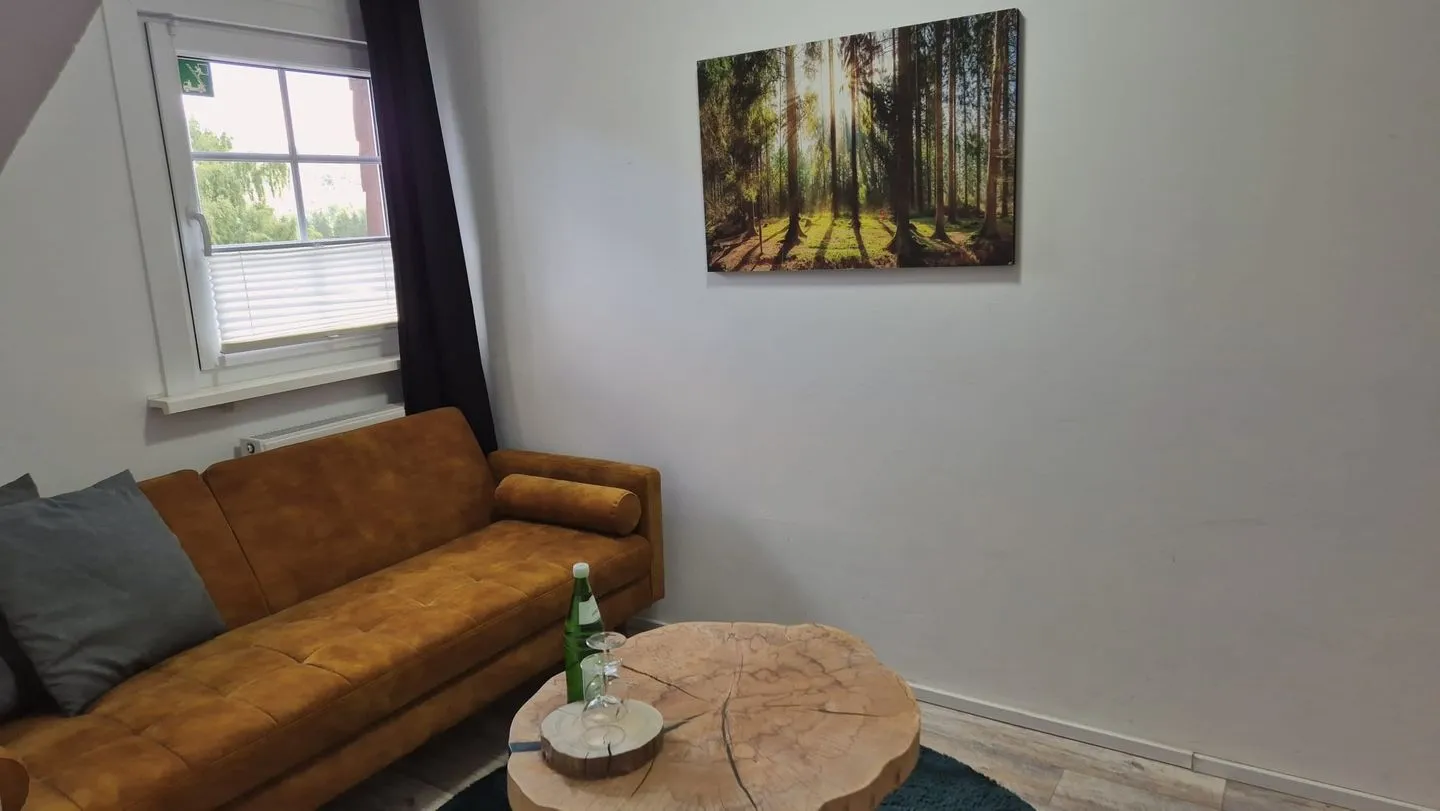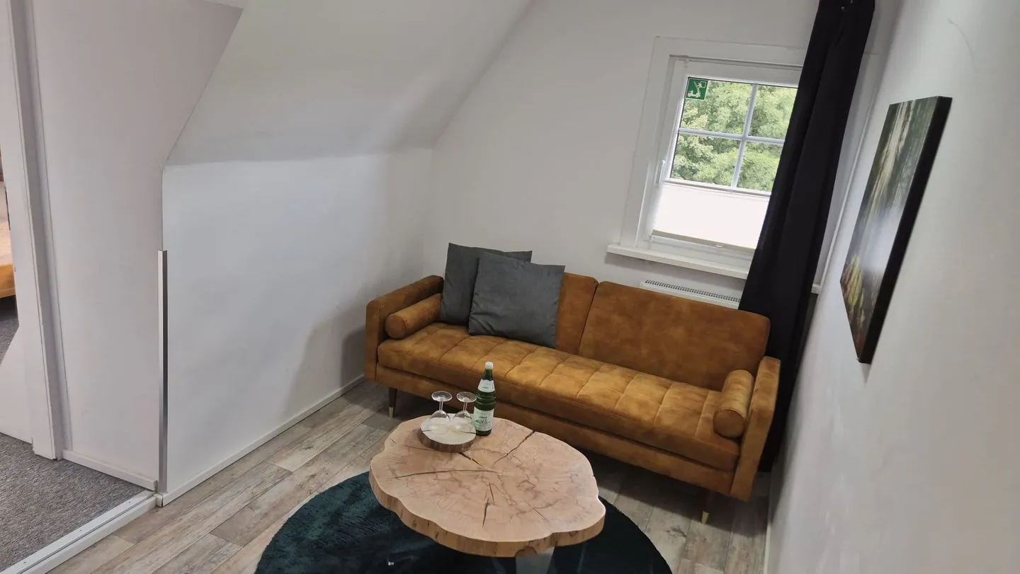 Entspannen Sie im gemütlichen Aufenthaltsraum im Erdgeschoss oder im überdachten Außenbereich. Die Lage am Waldrand und die Nähe zum Zentrum machen die Harzlodge zum idealen Rückzugsort.