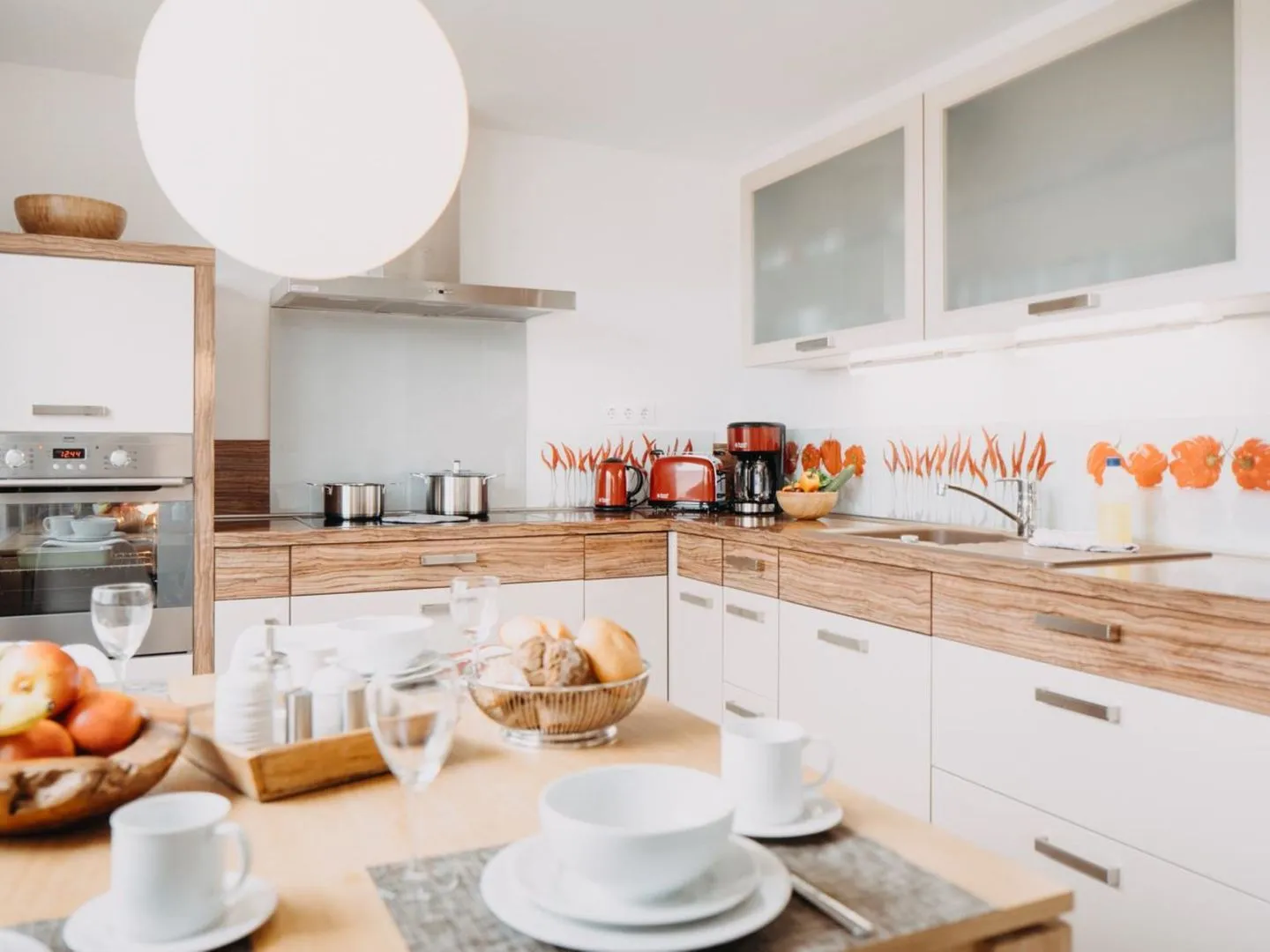 Mehrere Schlafzimmer sowie zwei Badezimmer ermöglichen einen komfortablen Aufenthalt auch für größere Gruppen oder Familien. Die voll ausgestattete Küche bietet alles, was Sie für eine unkomplizierte Selbstversorgung benötigen.