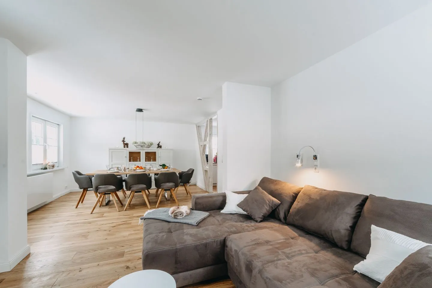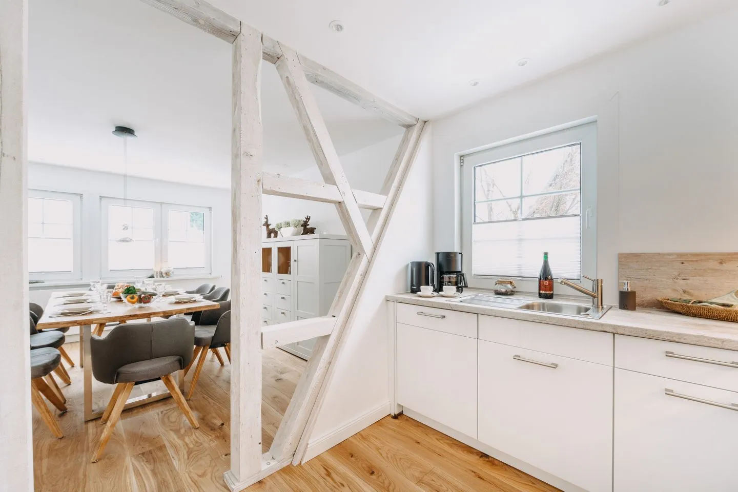 ✔ Offene, voll ausgestattete Küche mit angrenzendem Essbereich & großem Esstisch
