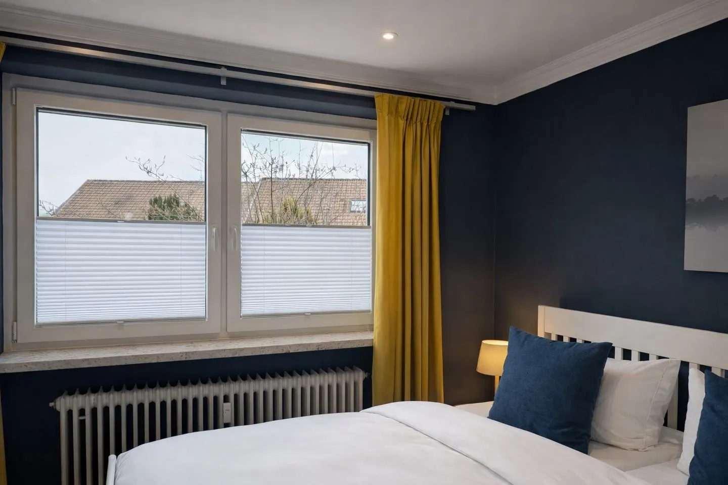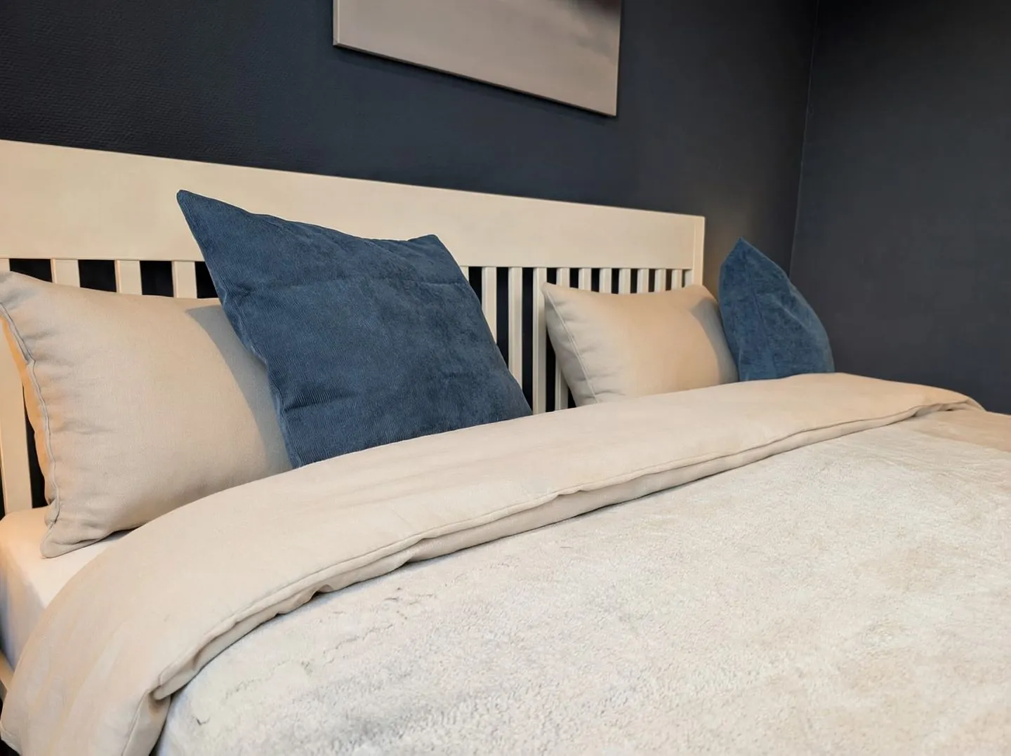 Das Schlafzimmer ist schlicht und komfortabel eingerichtet und bietet eine angenehme Rückzugsmöglichkeit nach einem aktiven Tag im Harz.